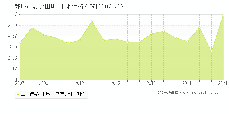 土地価格2010年志比田町土地価格(1800㎡)- 坪単価2.2万円/坪