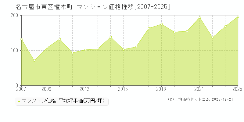 マンション価格2008年橦木町マンション価格(65㎡)- 坪単価71.21万円/坪