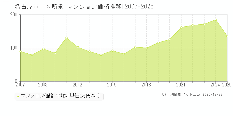 マンション価格2020年新栄マンション価格(25㎡)- 坪単価145.5万円/坪