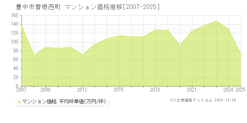 マンション価格2014年曽根西町マンション価格(70㎡)- 坪単価141.71万円/坪