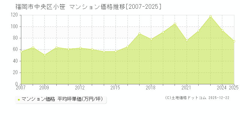 マンション価格2012年小笹マンション価格(70㎡)- 坪単価51.96万円/坪