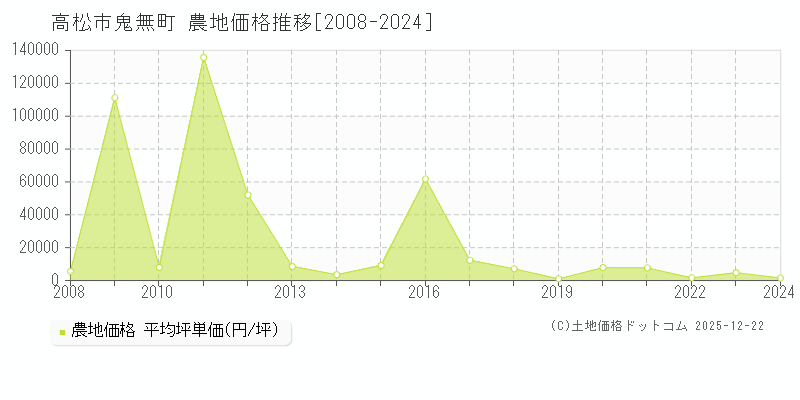 鬼無町(高松市)-香川県農地価格資料|年に国土交通省が実施している取引価格情報提供制度にかかる公表資料データ、鬼無町(高松市)の農地取引事例を56件収録。町域(地点)の農地価格(平均坪単価・変動率)一覧・農地価格の推移グラフなどの相場情報を以下に掲載。検索結果から[31-56]件目を表示