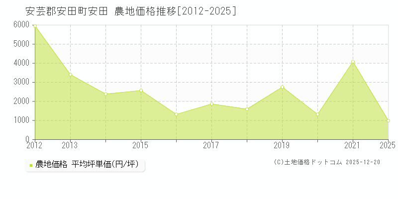 農地価格2012年安田農地価格(1000㎡)- 坪単価3,306円/坪