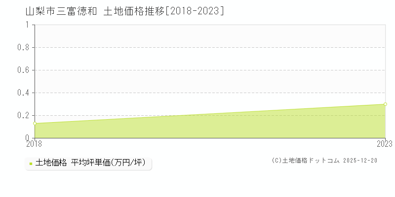 三富徳和(山梨市)-山梨県土地価格[坪単価 2023年]資料|2023年に国土交通省が実施している取引価格情報提供制度にかかる公表資料データ、三富徳和(山梨市)の土地取引事例[2018-2023年]を4件収録。町域(地点)の土地価格(平均坪単価・変動率)一覧・土地価格の推移グラフなどの相場情報を以下に掲載。