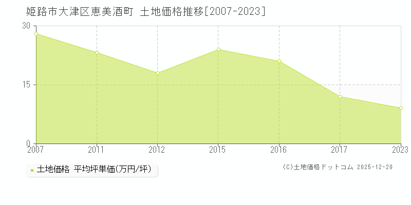 大津区恵美酒町(姫路市)-兵庫県土地価格[坪単価 2023年]資料|2023年に国土交通省が実施している取引価格情報提供制度にかかる公表資料データ、大津区恵美酒町(姫路市)の土地取引事例[2007-2023年]を12件収録。町域(地点)の土地価格(平均坪単価・変動率)一覧・土地価格の推移グラフなどの相場情報を以下に掲載。