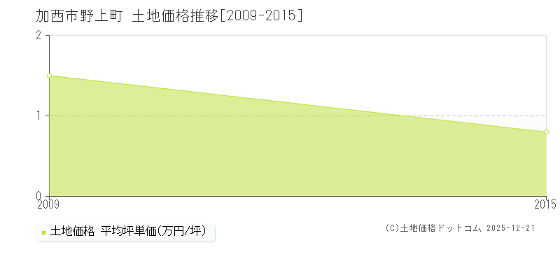 野上町(加西市)-兵庫県土地価格[坪単価 2015年]資料|2015年に国土交通省が実施している取引価格情報提供制度にかかる公表資料データ、野上町(加西市)の土地取引事例[2009-2015年]を2件収録。町域(地点)の土地価格(平均坪単価・変動率)一覧・土地価格の推移グラフなどの相場情報を以下に掲載。