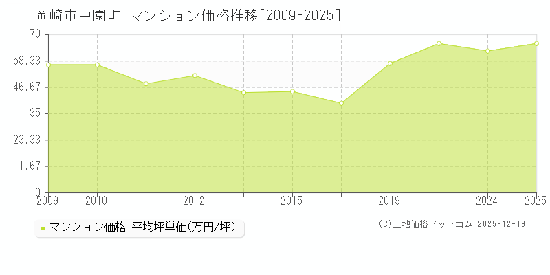マンション価格2009年中園町マンション価格(70㎡)- 坪単価56.68万円/坪
