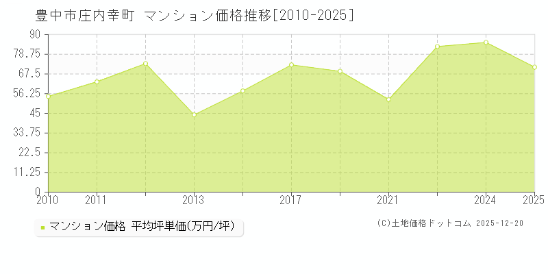 マンション価格2025年庄内幸町マンション価格(20㎡)- 坪単価79.34万円/坪
