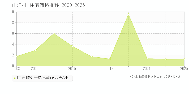 山江村-熊本県住宅価格[坪単価 2025年]資料|2025年に国土交通省が実施している取引価格情報提供制度にかかる公表資料データ、山江村(熊本県)の住宅取引事例[2008-2025年]を14件件収録。町域(2地点)の住宅価格(平均坪単価・変動率)一覧・住宅価格の推移グラフなどの相場情報を以下に掲載。