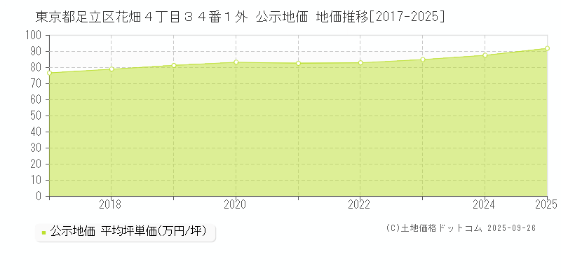 公示地価2025年東京都足立区花畑4丁目34番1外- 坪単価91.91万円/坪
