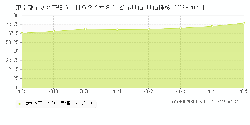 公示地価2025年東京都足立区花畑6丁目624番39- 坪単価80.67万円/坪