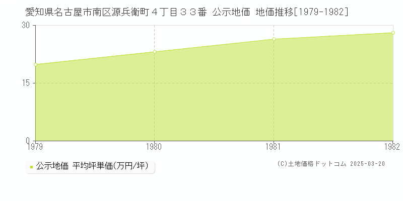 公示地価1982年愛知県名古屋市南区源兵衛町4丁目33番- 坪単価28.1万円/坪