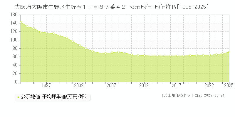 公示地価2025年大阪府大阪市生野区生野西1丁目67番42- 坪単価71.41万円/坪
