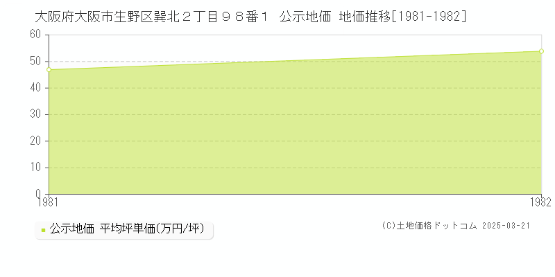 公示地価1982年大阪府大阪市生野区巽北2丁目98番1- 坪単価53.89万円/坪