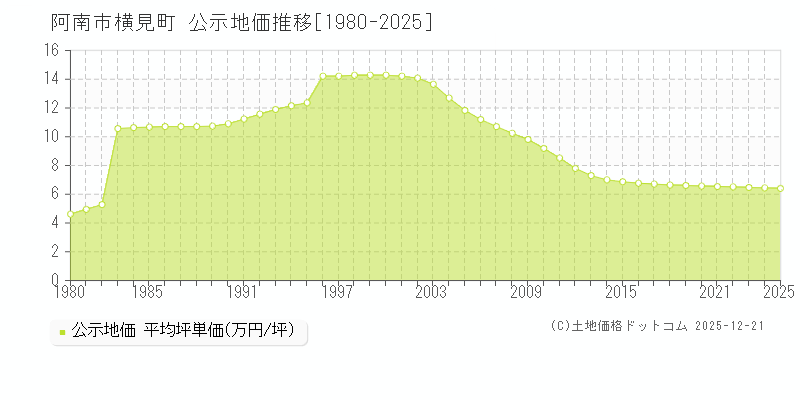 横見町(阿南市)-徳島県公示地価[坪単価 2025年]資料|2025年に国土交通省が実施している地価公示にかかる公表資料データ、横見町(阿南市)の地価公示[1980-2025年]を1件収録。町域(地点)の公示地価(平均坪単価・変動率)一覧・公示地価の推移グラフなどの相場情報を以下に掲載。