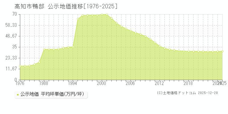 鴨部(高知市)-高知県公示地価[坪単価 2025年]資料|2025年に国土交通省が実施している地価公示にかかる公表資料データ、鴨部(高知市)の地価公示[1976-2025年]を2件収録。町域(地点)の公示地価(平均坪単価・変動率)一覧・公示地価の推移グラフなどの相場情報を以下に掲載。